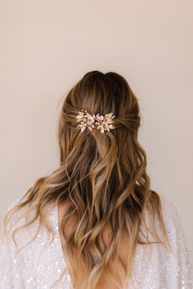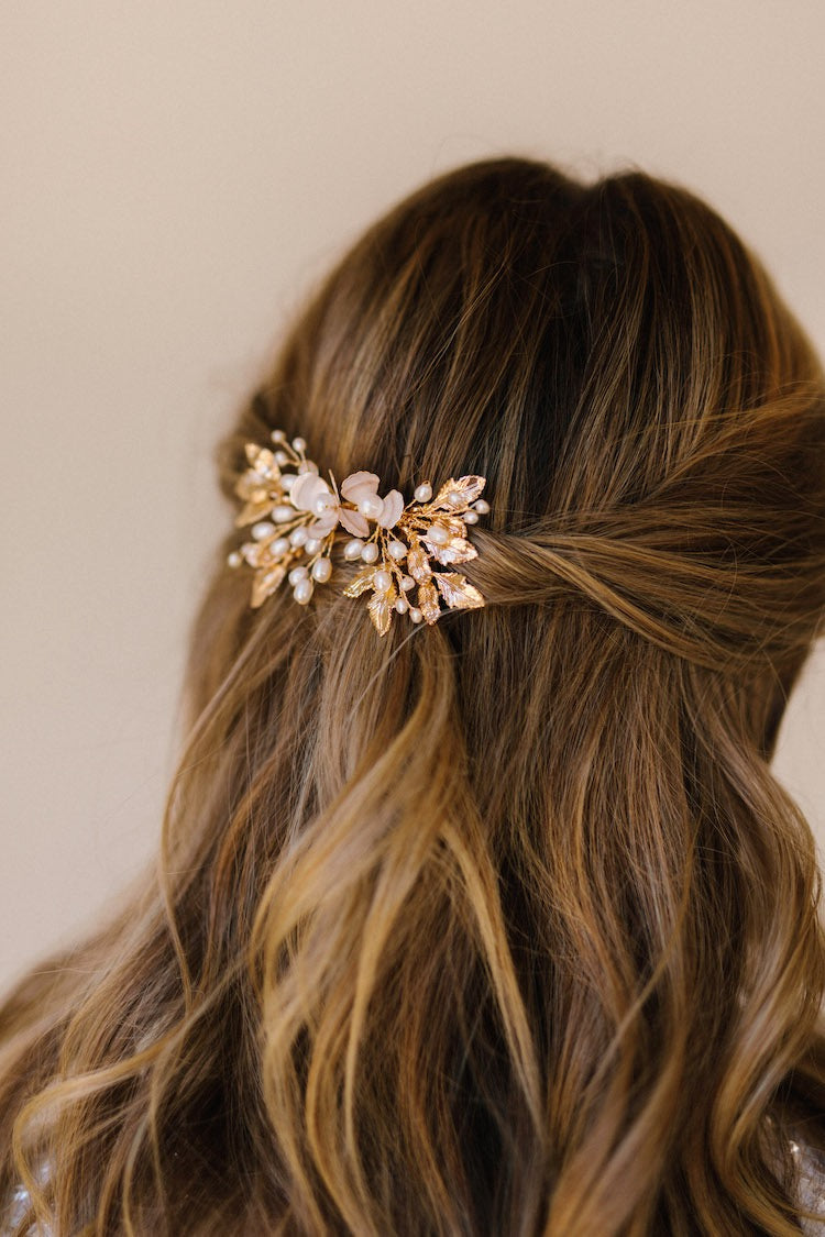 Golden floral comb with pearls and crystals